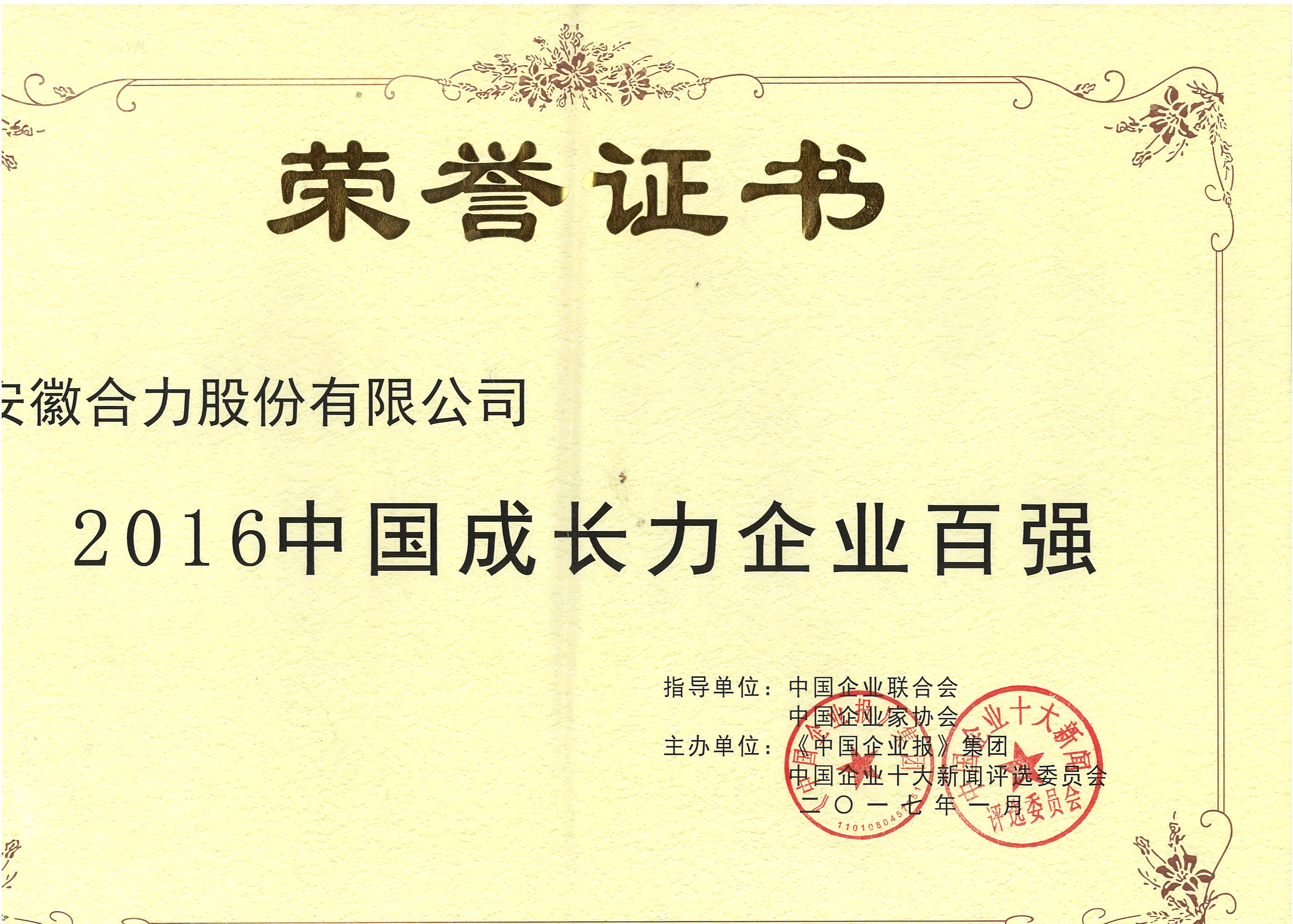 2016中國成長力企業(yè)百強(qiáng)